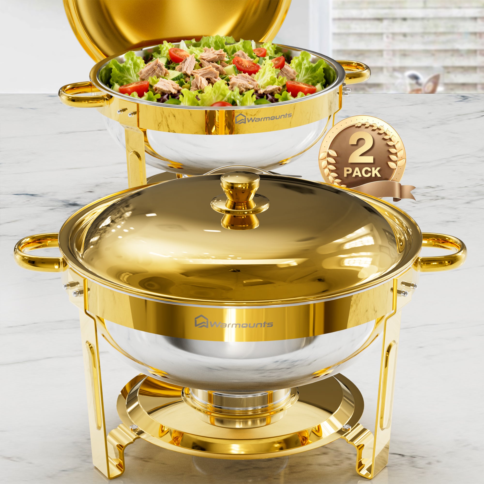 WARMOUNTS Upgrade gold chafing dishes for buffet are made of thickened food-grade stainless steel, which ensures safer use and is less prone to rusting. The edges of both the water pan and food pan are meticulously.